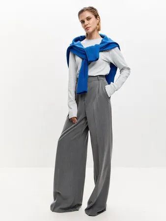 Образ полностью составлен из одежды на высокий рост: правильная длина рукавов, удлинённые штанины и выверенная посадка без компромиссов. Свитшот можно носить как часть костюма или сочетать с другими поясными изделиями, а длинные брюки для высоких Lite дают тот самый вытягивающий силуэт, который сложно найти в масс-маркете.