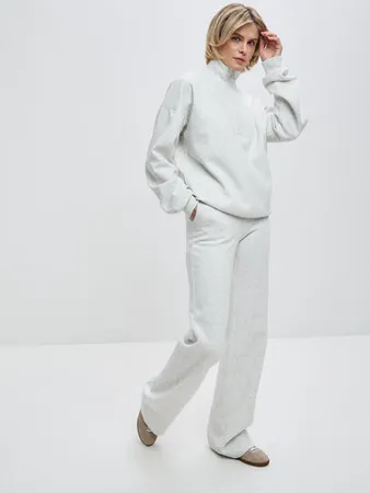 Это вещи, в которых хочется жить: мягкий хлопковый свитер, уютные трикотажные брюки, спокойные линии и ощущение, что тебе комфортно в собственном теле и в своём росте. Когда ничего не нужно подтягивать, одергивать, когда брюки уверенно закрывают лодыжки, а рукава доходят до середины запястья.