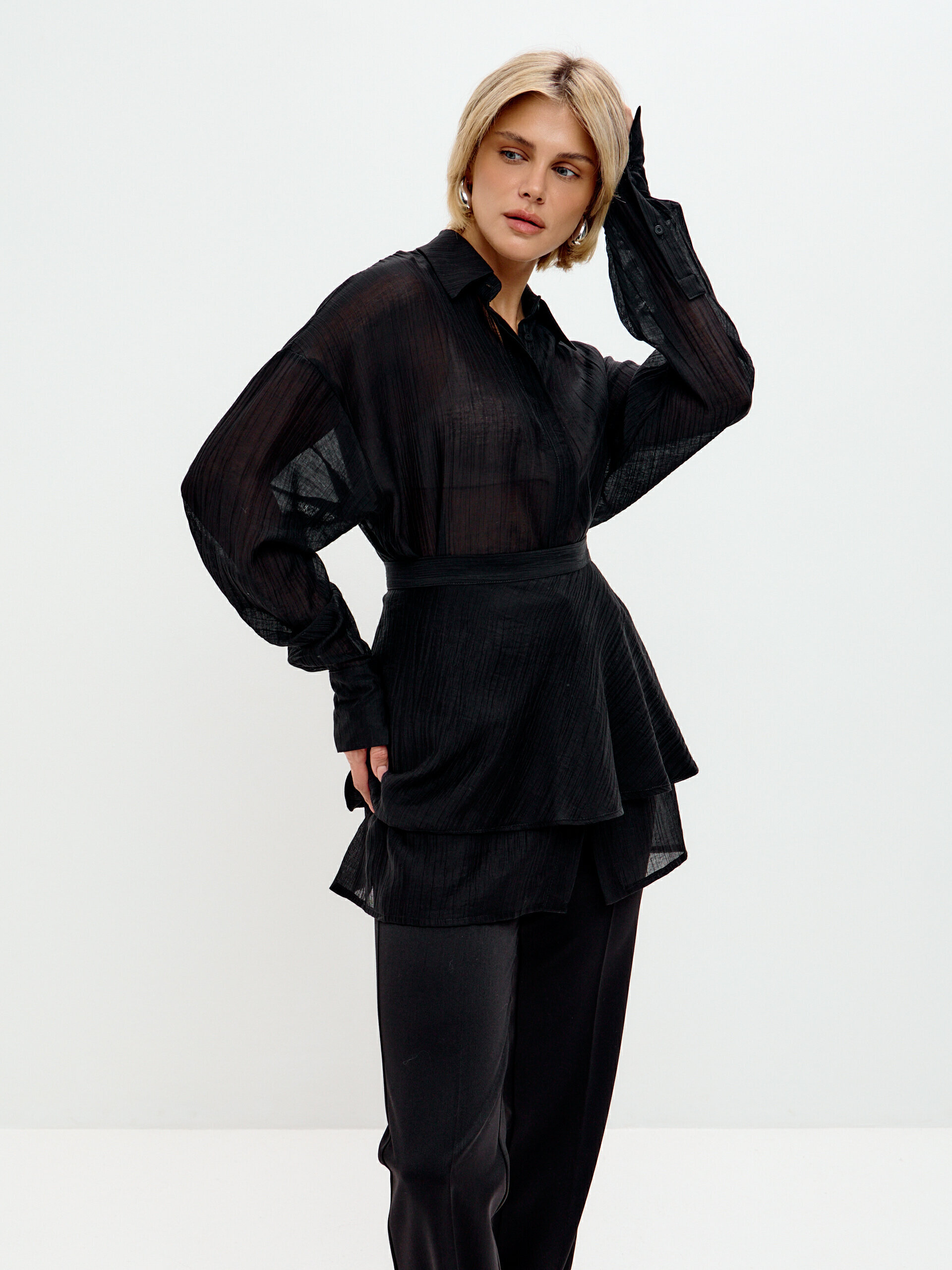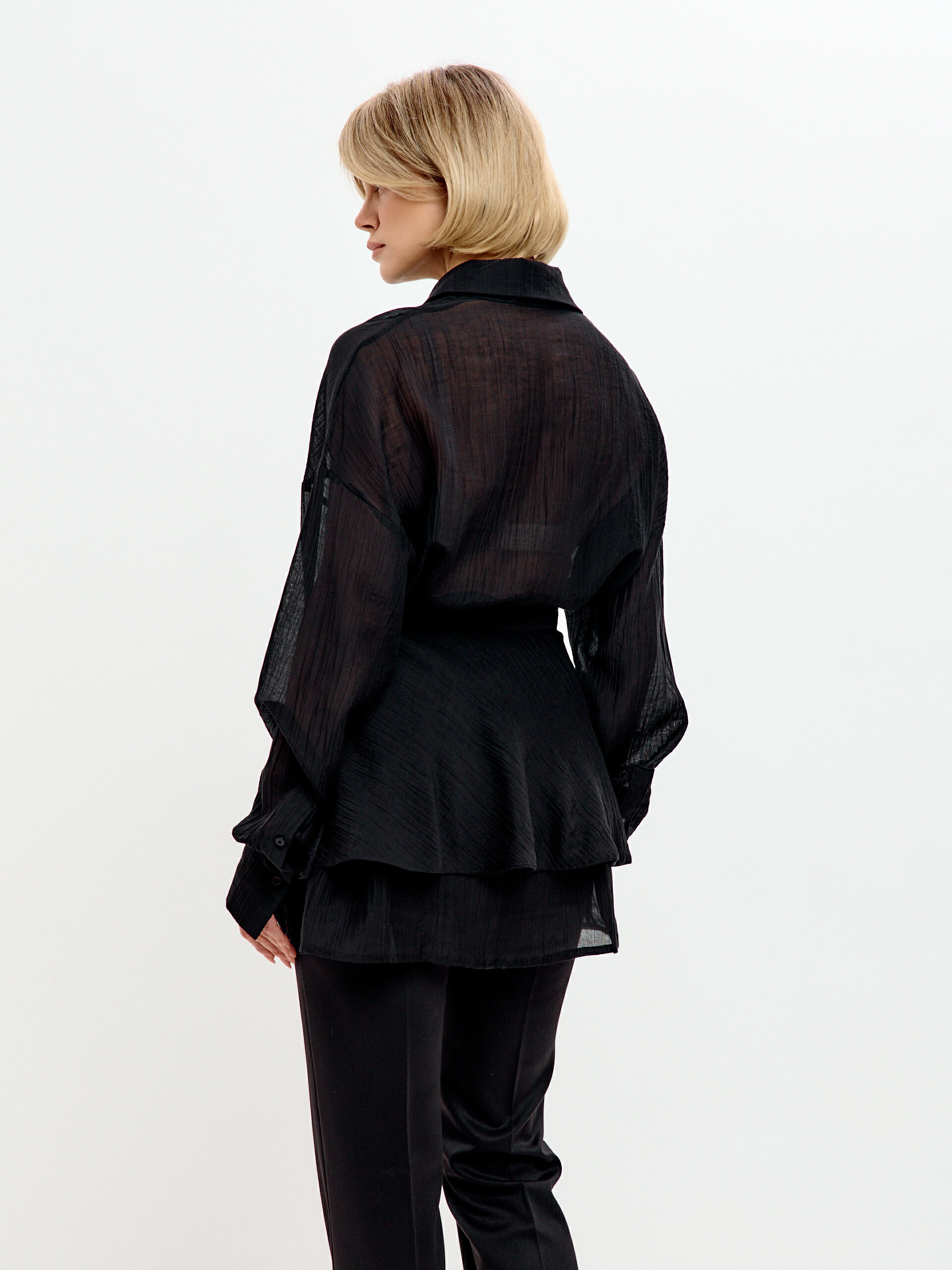 Особенная прелесть этого комплекта – в его универсальности. Носите блузку и баску вместе для создания эффектного вечернего образа, или используйте их по отдельности, комбинируя с другими вещами из гардероба. Блузка прекрасно смотрится с брюками или юбкой, а баска добавит изюминку даже простой однотонной водолазке.
