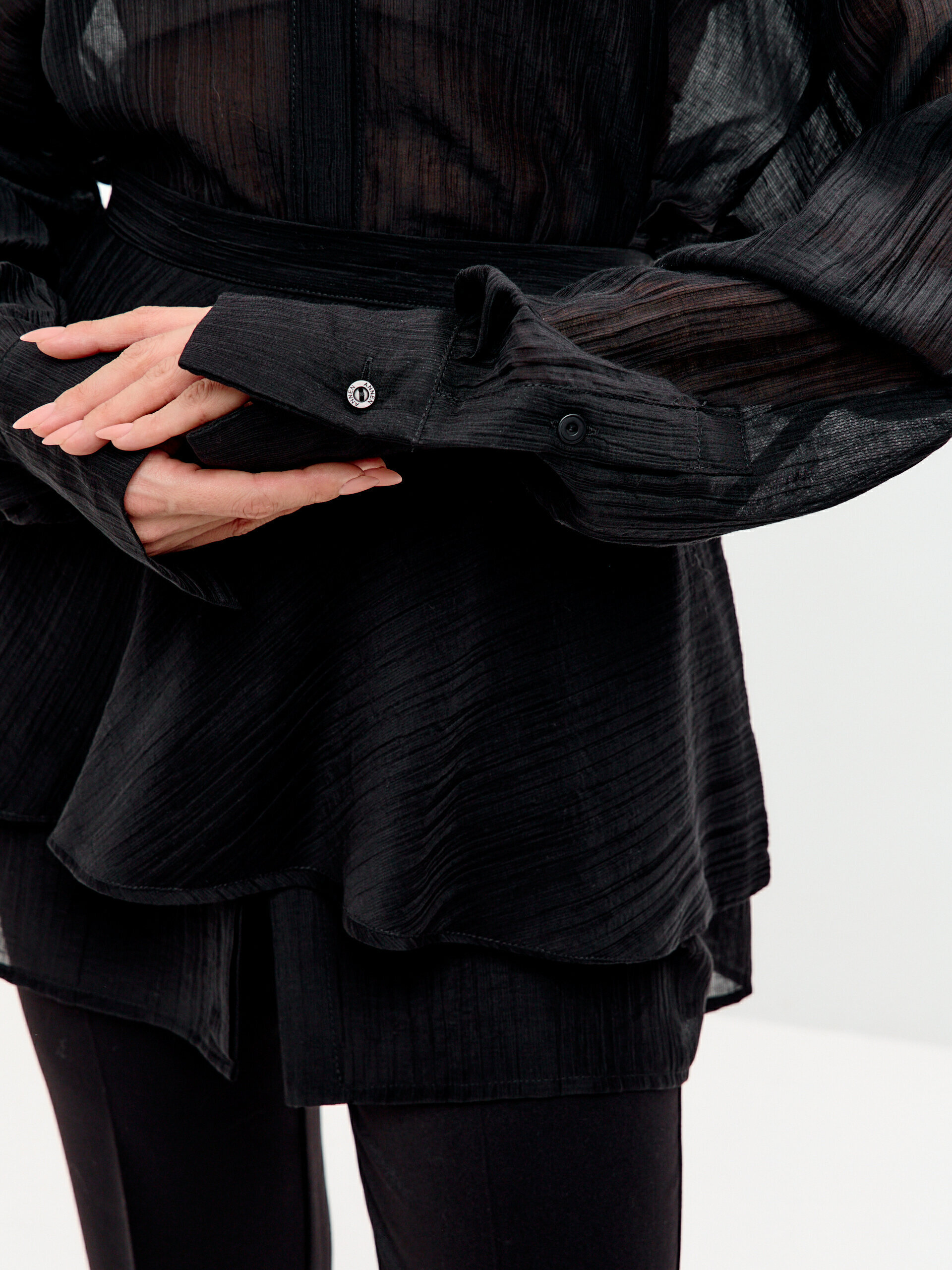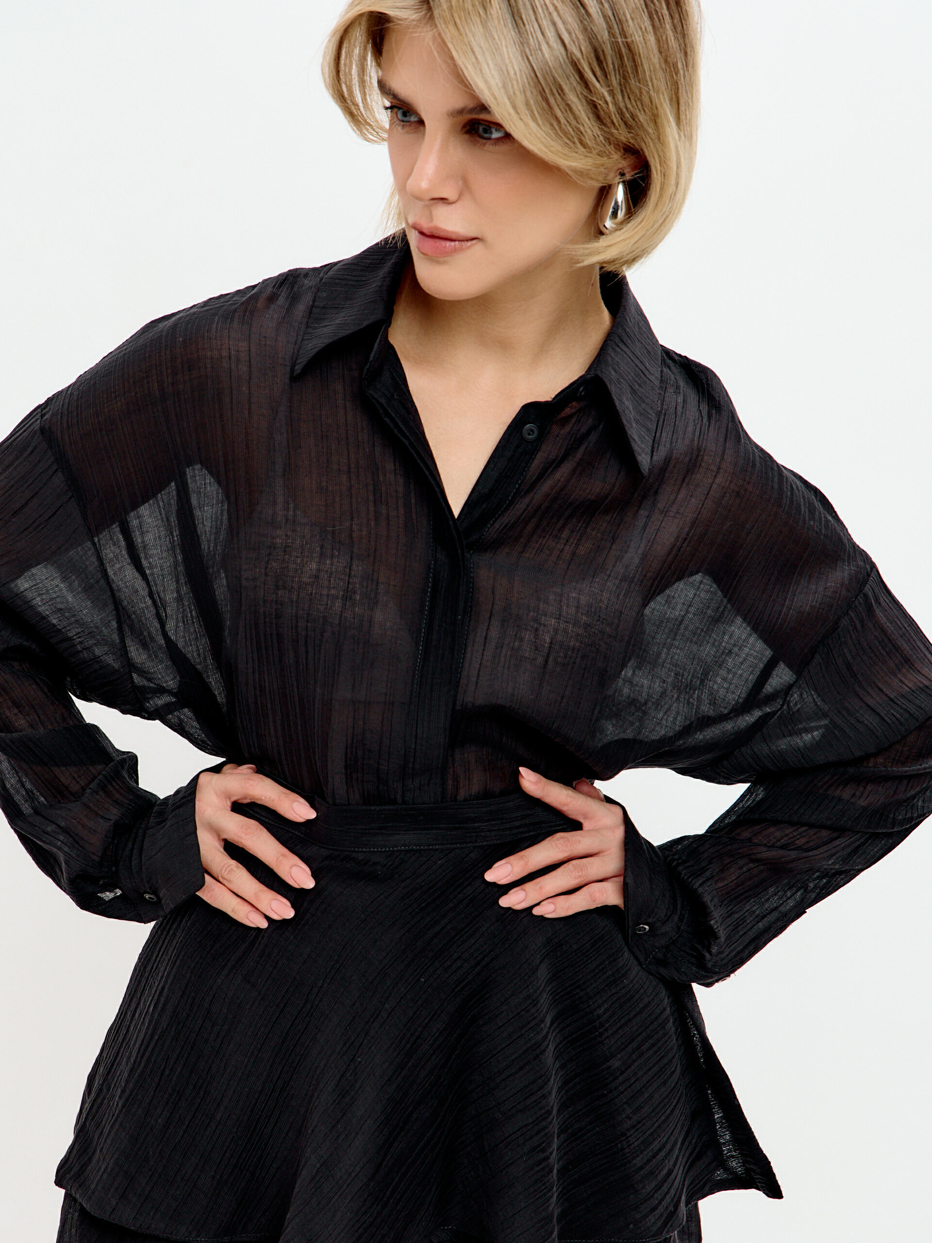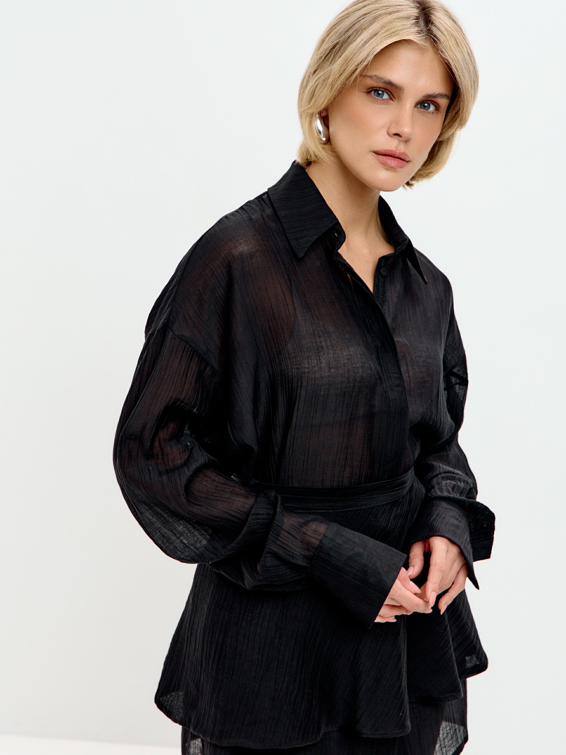 Мы сшили этот комплект из натурального тенсела – благородной ткани с легкой полупрозрачностью и красивой ярко выраженной фактурой. Все это создает элегантный образ, который так нужен для торжественных случаев – будь то новогодняя вечеринка, праздничный ужин или важное мероприятие.