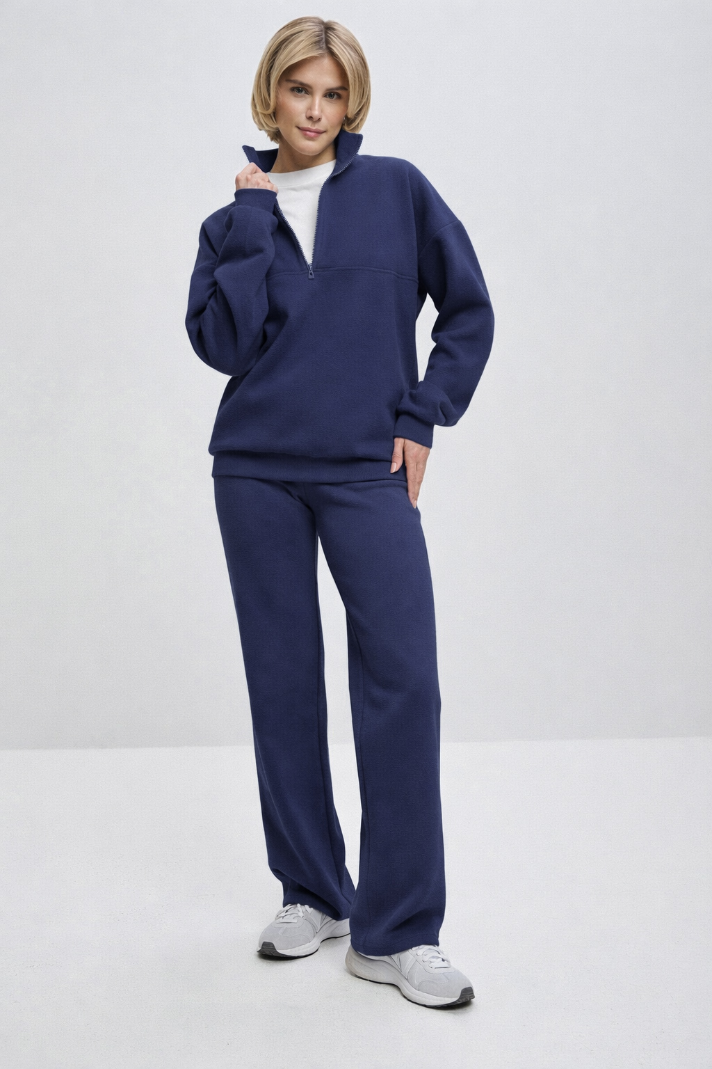 Комплектом к брюкам можно приобрести свитшот (сшит из того же футера двухнитки) – получится гармоничный повседневный костюм. Но брюки можно носить и самостоятельно – с футболками, лонгсливами или любимыми свитерами и толстовками.