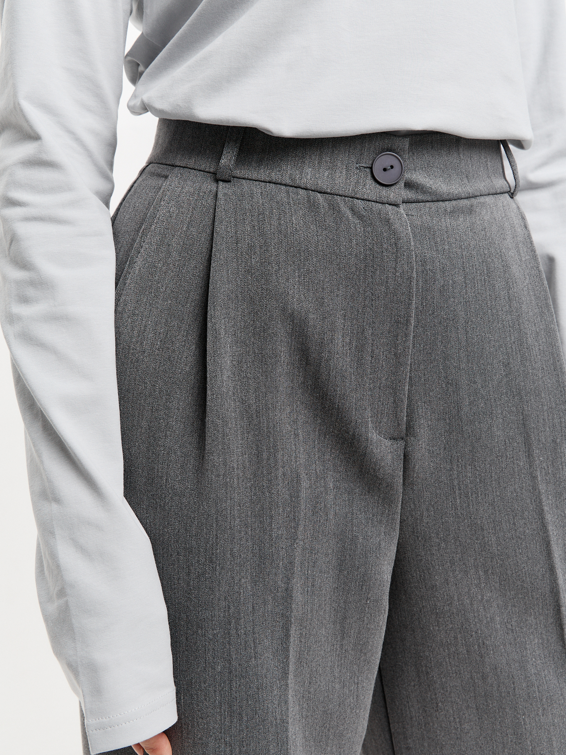 Защипы, расположенные в области талии или бедер, добавляют брюкам интересный визуальный акцент и помогают создать эффектную силуэтную линию. Это позволяет носить их практически круглый год и сочетать с разными верхами — от простых футболок до элегантных блузок.