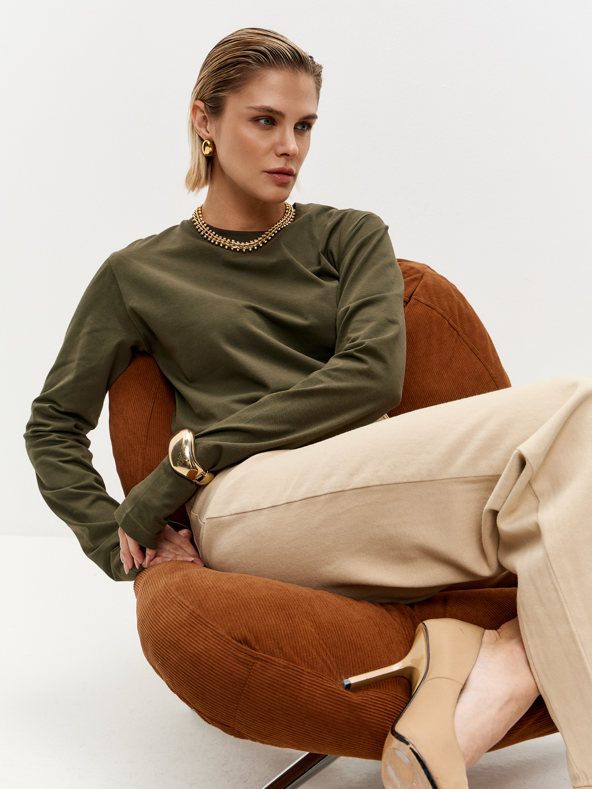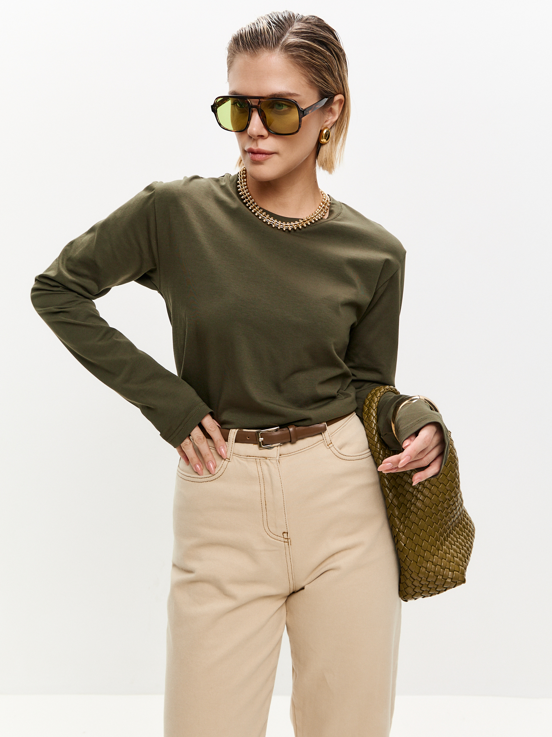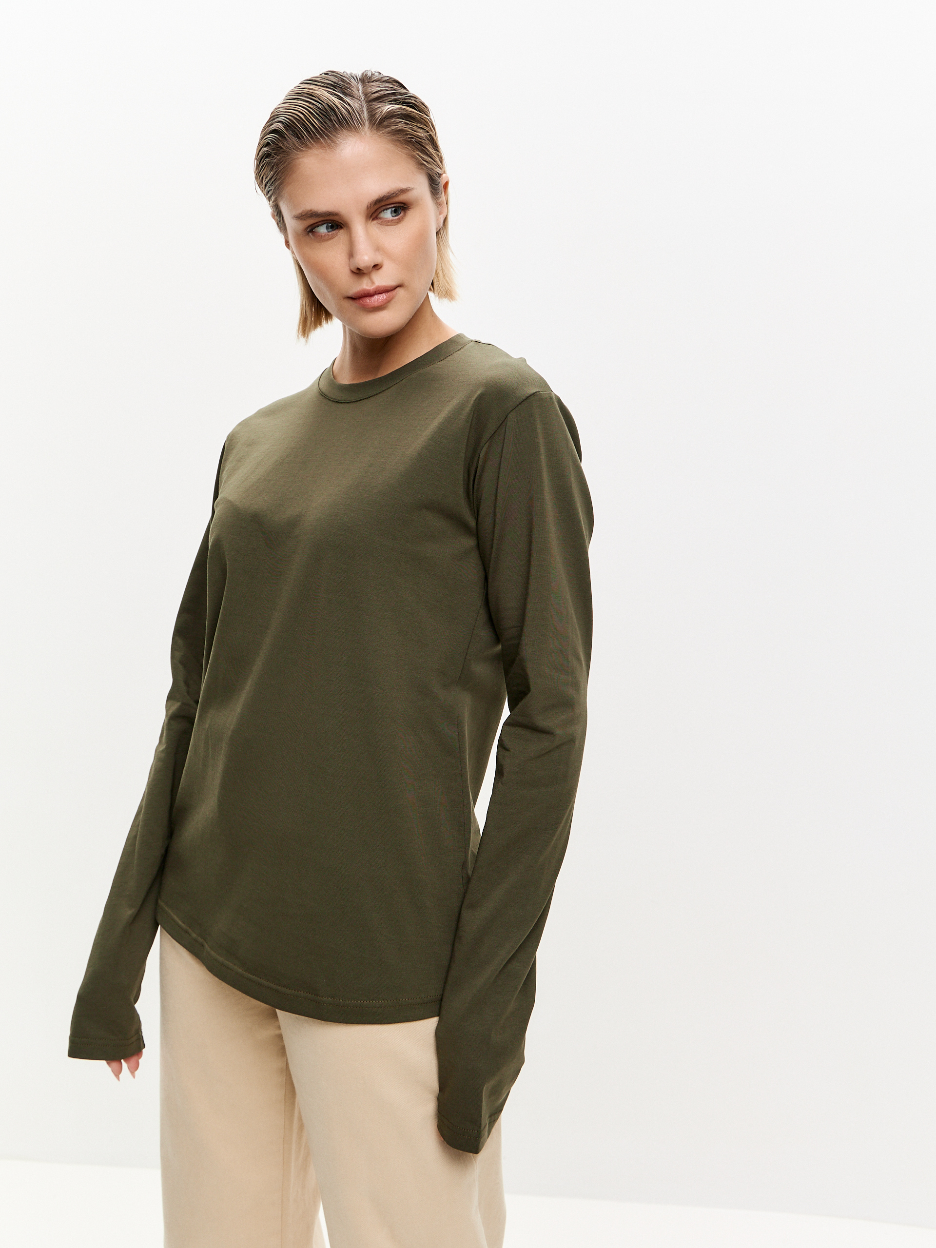 Яркий и комфортный лонгслив для высоких девушек. Просто добавьте к нему ваши любимые брюки или джинсы EVERY PERSON и ботинки — стильный повседневный образ готов!