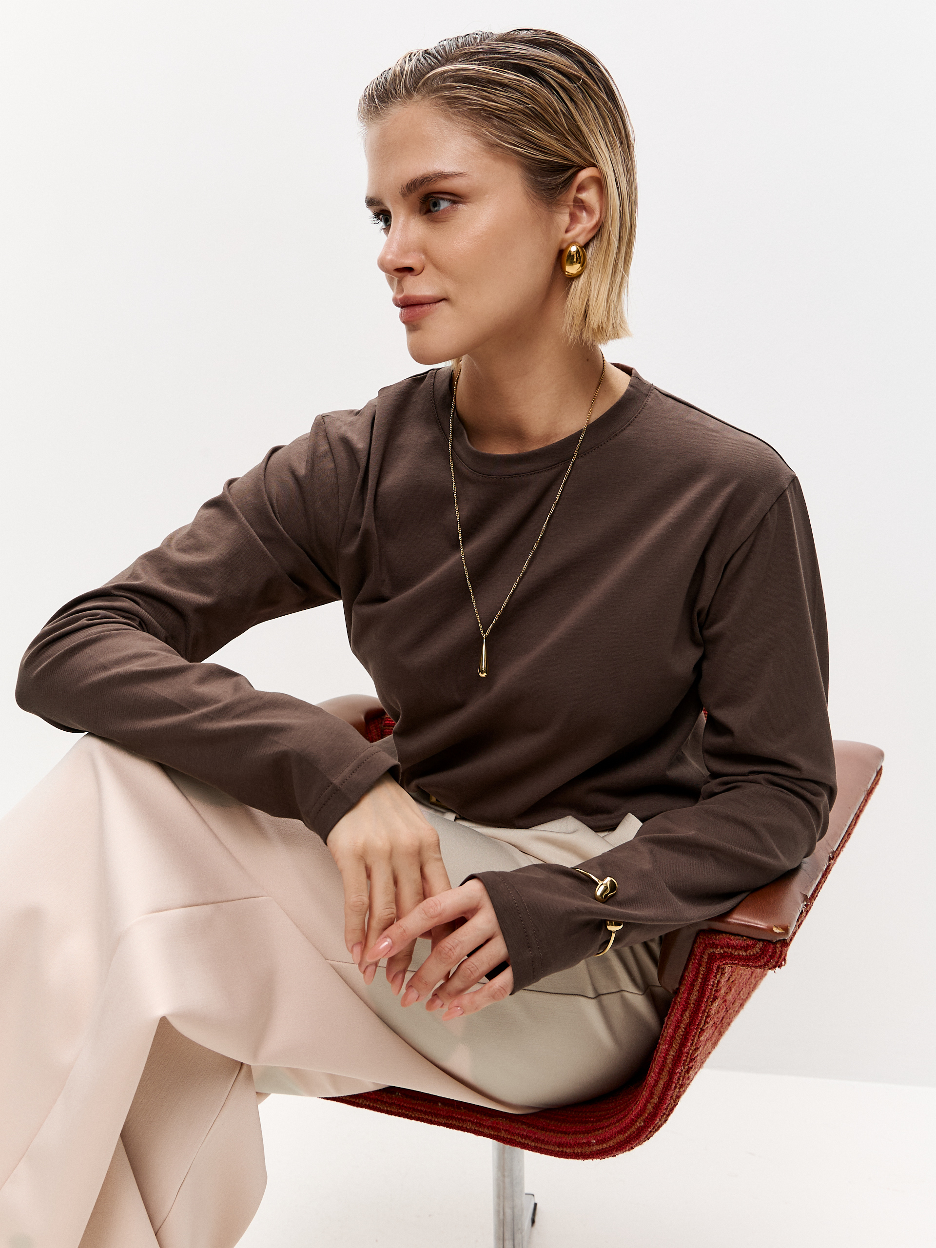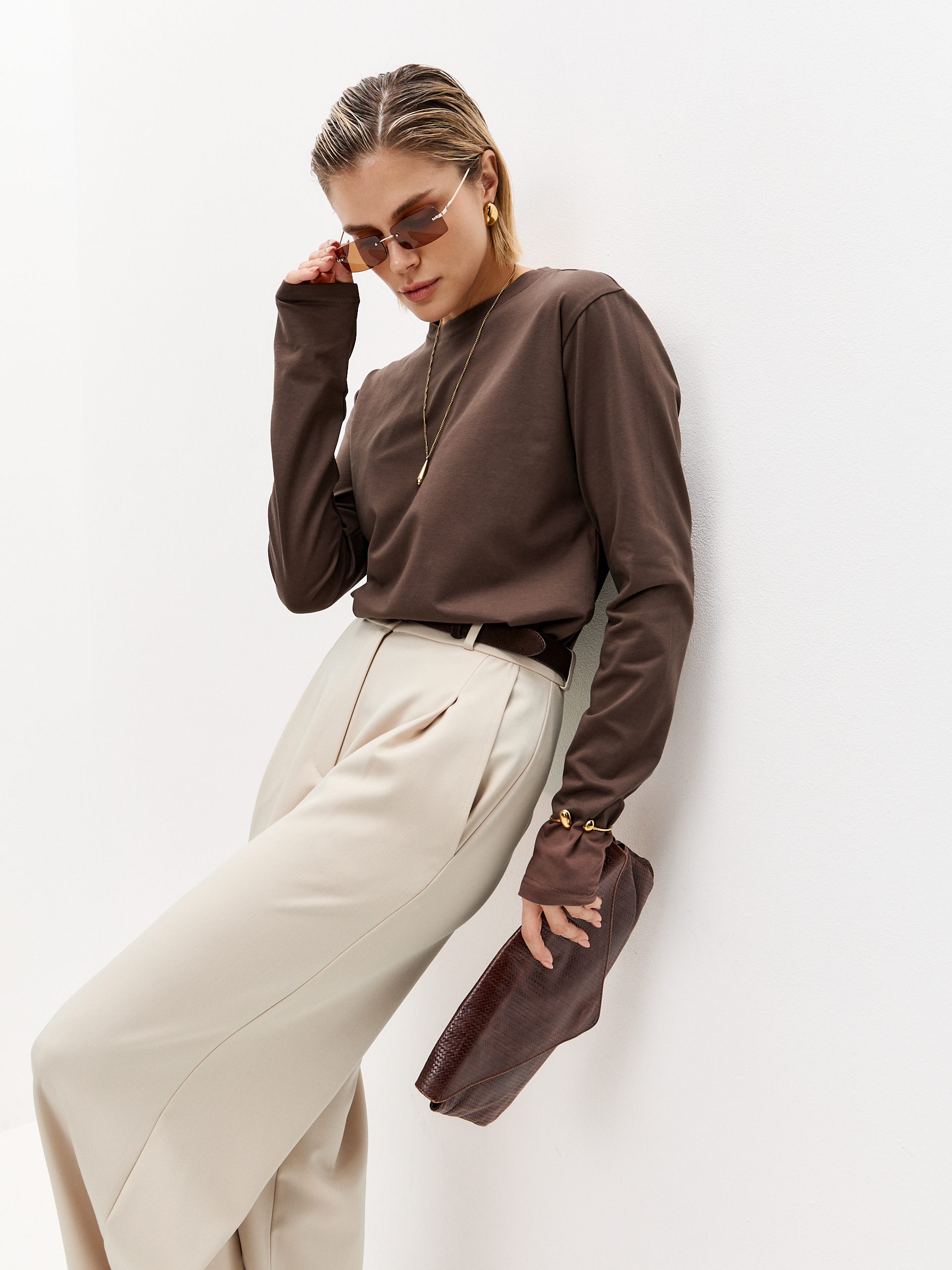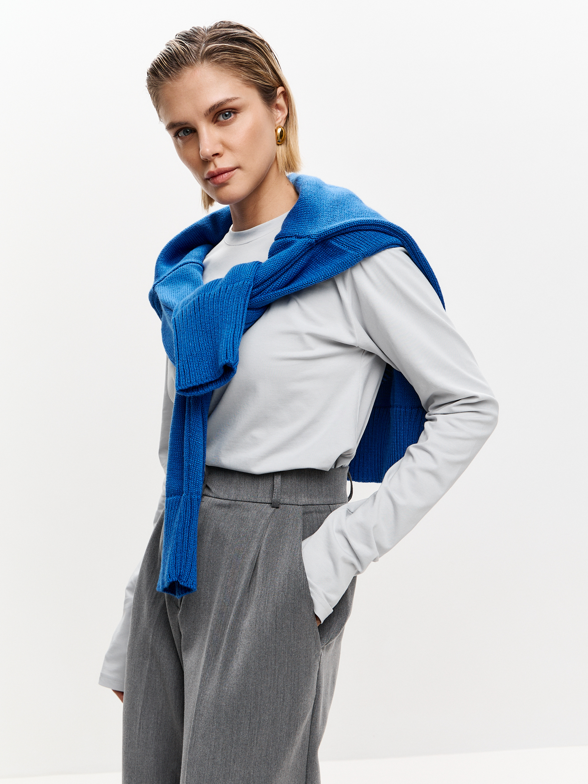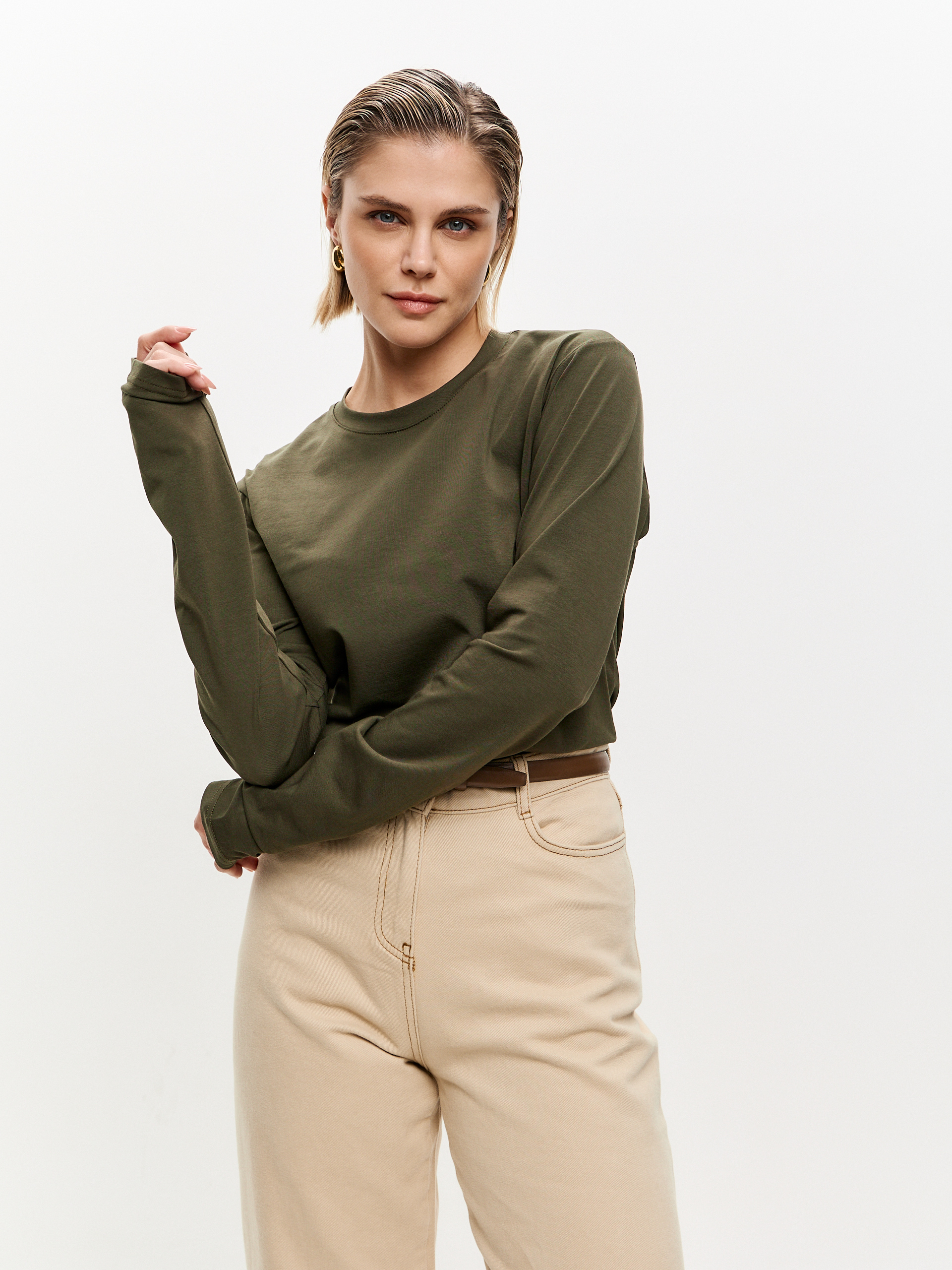 Яркий и комфортный лонгслив для высоких девушек. Просто добавьте к нему ваши любимые брюки или джинсы EVERY PERSON и ботинки — стильный повседневный образ готов!
