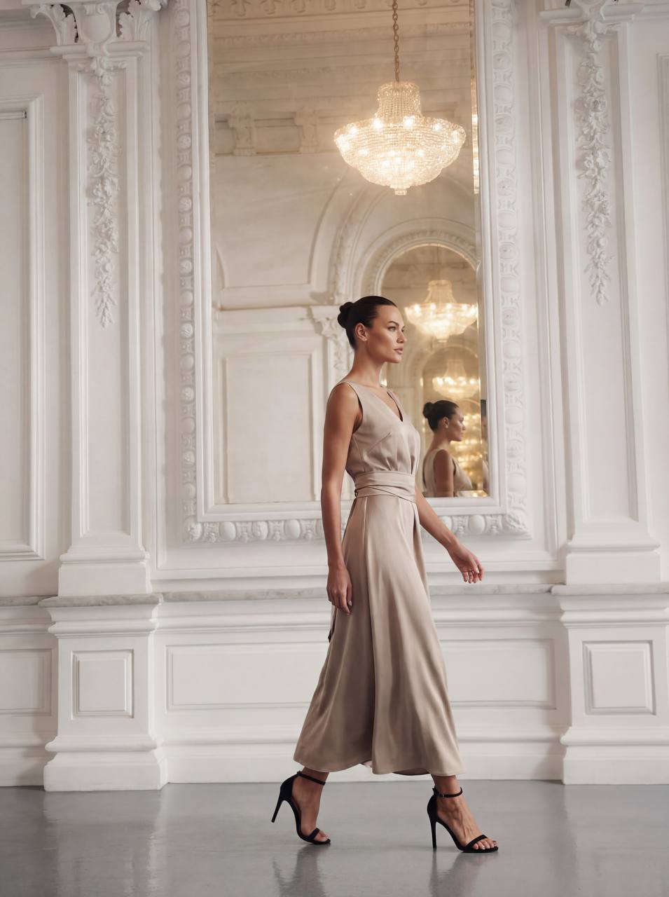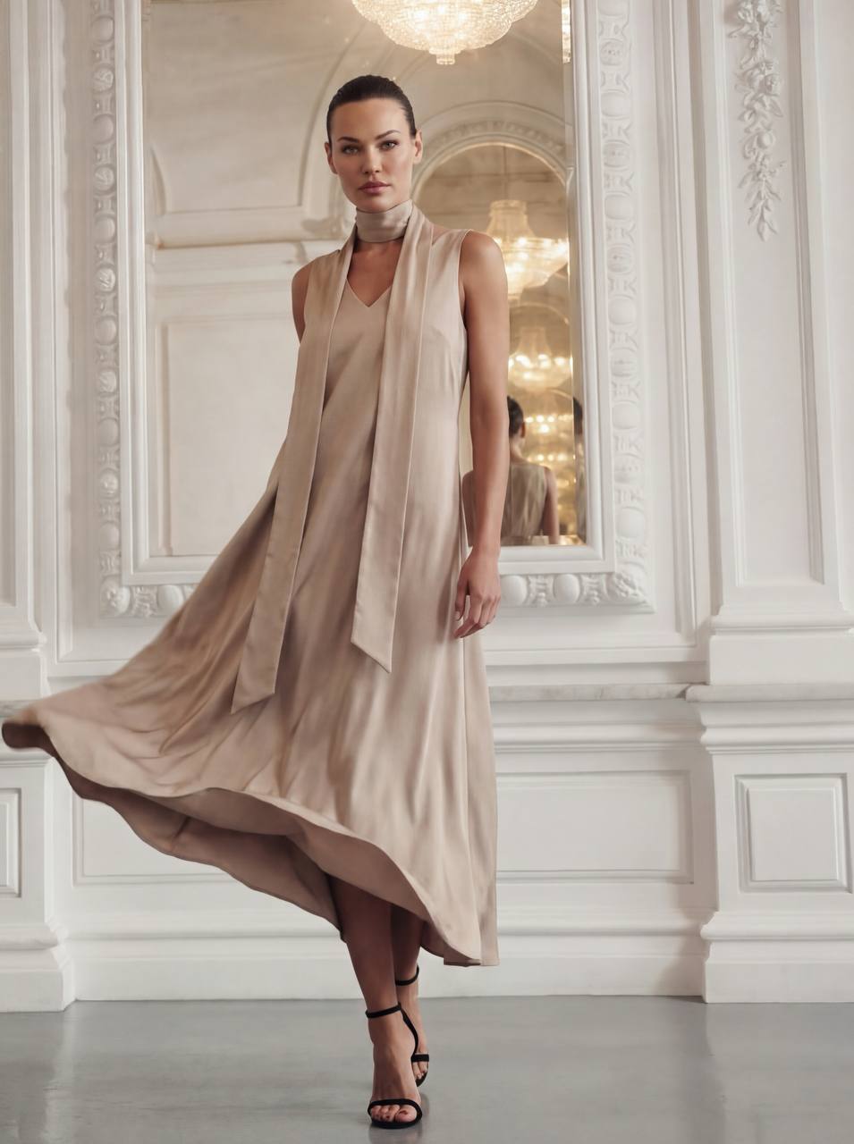 Струящаяся ткань, широкие бретели и акцент на талии — это платье создано подчеркивать ваш роскошный силуэт. Не стоит переживать, что вытачки будут не на месте, что особенности фигуры могут слишком выделяться. Мы постарались создать абсолютно новые, уникальные лекала, которые подойдут всем. Must-have в гардеробе каждой высокой девушки круглый год, а значит это инвестиция на длительный период!