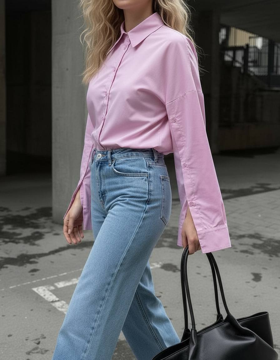 Классическая рубашка с неклассическими рукавами в приятном розовом оттенке уже готова стать частью вашего весеннего гардероба.