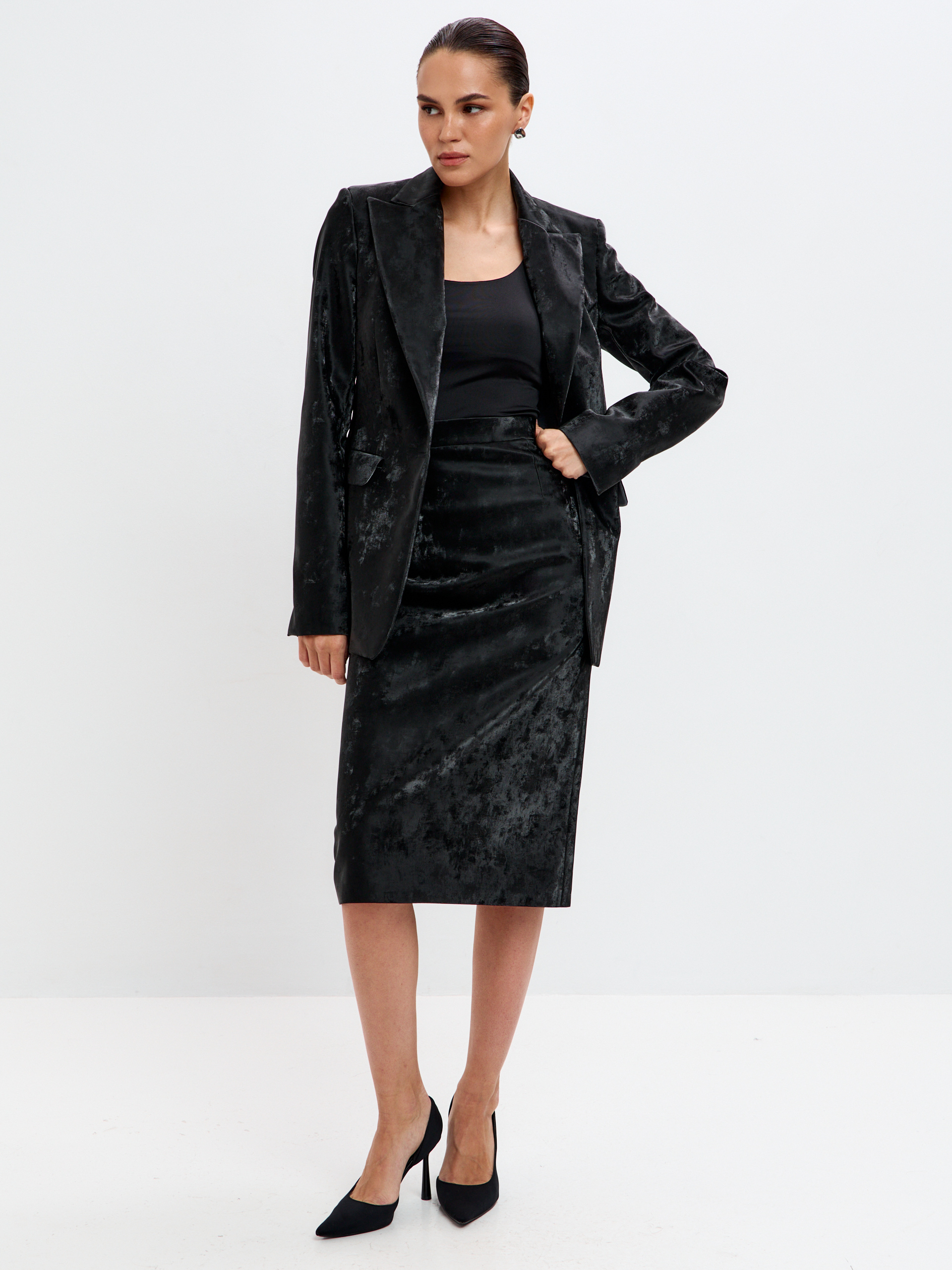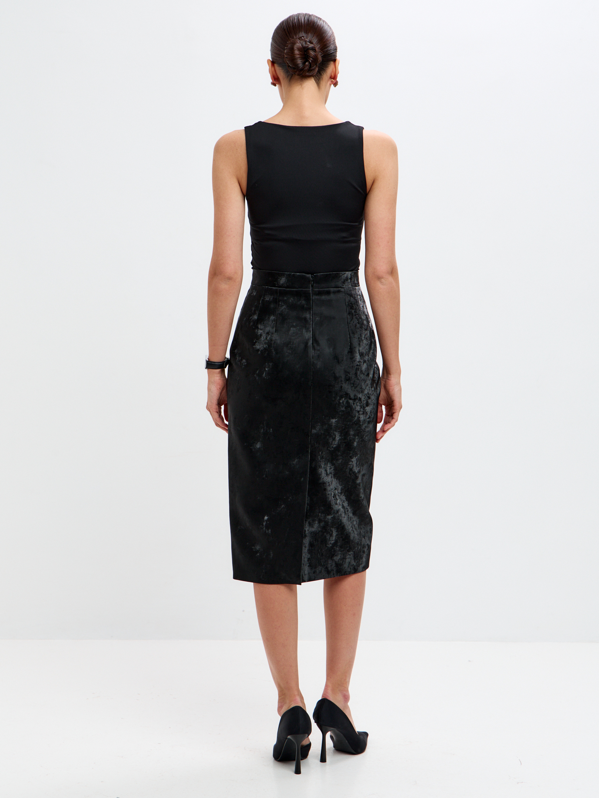 Юбка-карандаш ниже колена. Звучит просто, но если ваш рост выше 180 см, вы знаете, как сложно найти ту, что действительно ниже колена, а не задирается выше при первом шаге. Мы создали юбку для высоких, которая останется элегантной и на каблуках, и в обуви на плоском ходу.